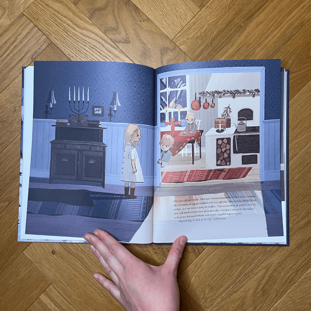 Tekst został wcześniej opublikowany w antologii "En jul när jag var liten" (Rabén i Sjögren 1992). Teraz po raz pierwszy został wydany jako książka obrazkowa z ilustracjami Cecilii Heikkilä.